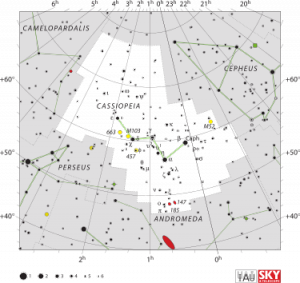 Because it lies in rich Milky Way star fields, Cassiopeia contains many deep sky objects, including open clusters and nebulae.