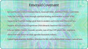 The Cosmic Founders promise to us was made with the Emerald Covenant, that all Souls in this Fallen Universe would eventually be found and returned back to their original spiritual home. This was the original divine plan of spiritual Ascension, the evolutionary journey through the astrological ages and timelines which would facilitate our way back home, to remember our divine purpose and be reunited with God.[7]