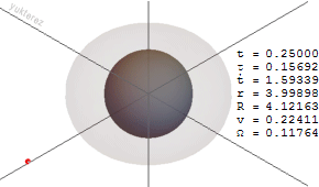 Animation: A test particle approaching the ergosphere in the retrograde direction is forced to change its direction of motion. Coordinate system: Boyer–Lindquist.A suspended plumb, held stationary outside the ergosphere, will experience an infinite/diverging radial pull as it approaches the static limit. At some point it will start to fall, resulting in a gravitomagnetically induced spinward motion.[clarification needed] An implication of this dragging of space is the existence of negative energies within the ergosphere.