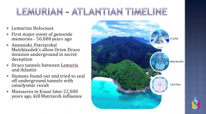 The Dracs went to the Lemurian continent to finish off the genocidal massacres in Kauai some 22,000 years ago, in order to kill off all the remaining tribes of Solar Female Melchizedek’s that were also Mu’a staff holders. This was to prepare for a completely patriarchal society on Earth as run by the invaders which formed into the Atlantian Brotherhood of the Snake containing; Nibiruians, Thothian Leviathans and those connected to the Orion Group who later formed the Luciferian Covenant. This was the final genocide of the matriarchal society lineage of Solar Female Melchizedeks running civilizations on the Earth surface, that was aided by the Annunaki negotiations and agreements, and was the last stage of the Lemurian Holocaust and the end of the Atlantian Golden Age.[2]