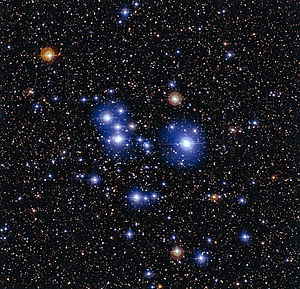 Messier 47 (Messier Object 47, M47, or NGC 2422) is an open cluster in the constellation Puppis. It was discovered by Giovanni Batista Hodierna before 1654 and independently discovered by Charles Messier on February 19, 1771. It was later independently discovered again, under the current name NGC 2422. There is actually no cluster in the position indicated by Messier, which he expressed in terms of its right ascension and declination with respect to the star 2 Puppis. However, if the signs of Messier's coordinate differences are changed, the position matches that of NGC 2422.[1] Until the equivalency of M47 with NGC2422 was found, M47 was considered a lost Messier Object. The discovery that M47 and NGC2422 were the same cluster only came in 1959 with a realization by Canadian astronomer T. F. Morris.